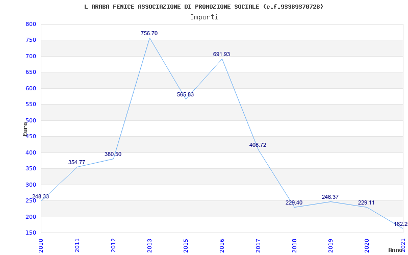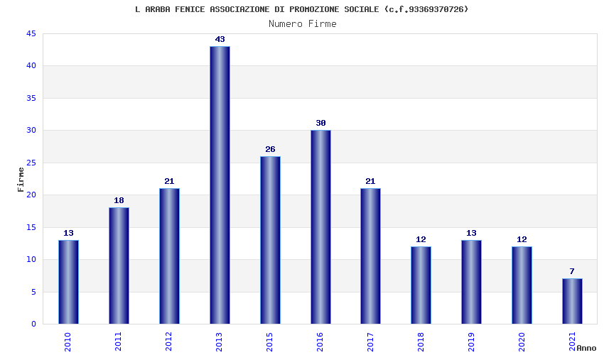| Anno | Firme | Importi | Media | Naz. | Reg. | Prov. | Comu. |