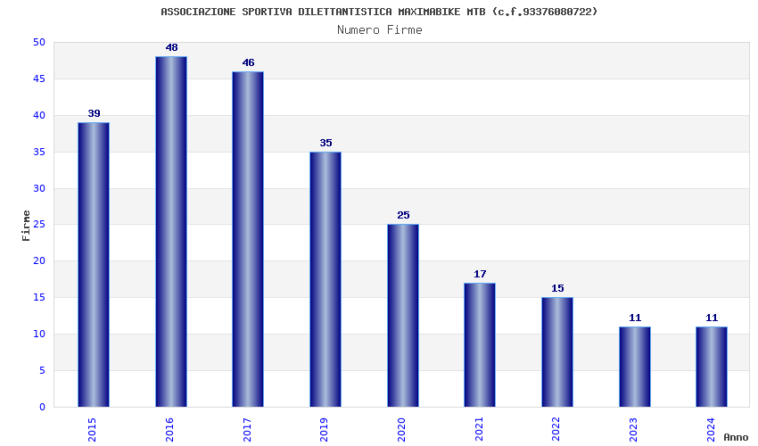 | 2017 | 46 | 1.856,00 | 40,35 | 24.657 | 1.179 | 398 | 4 |