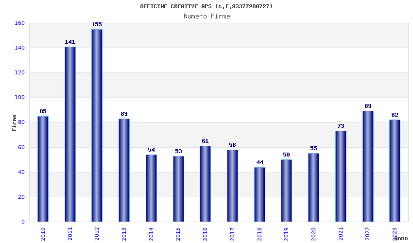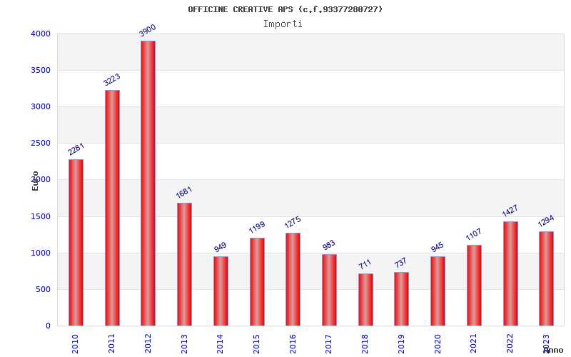 | Anno | Firme | Importi | Media | Naz. | Reg. | Prov. | Comu. |