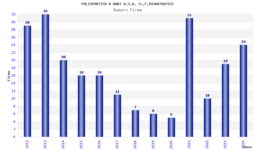 | Anno | Firme | Importi | Media | Naz. | Reg. | Prov. | Comu. |