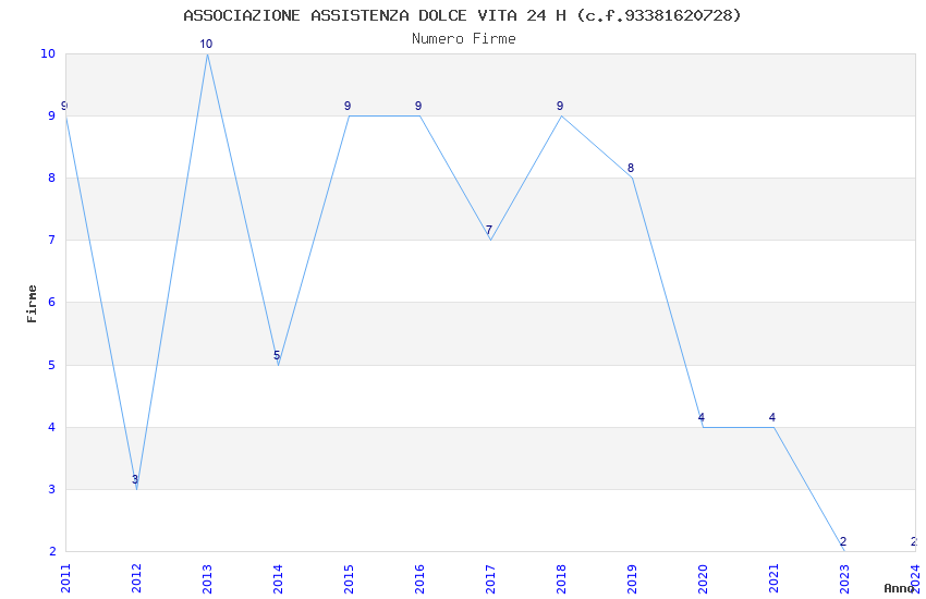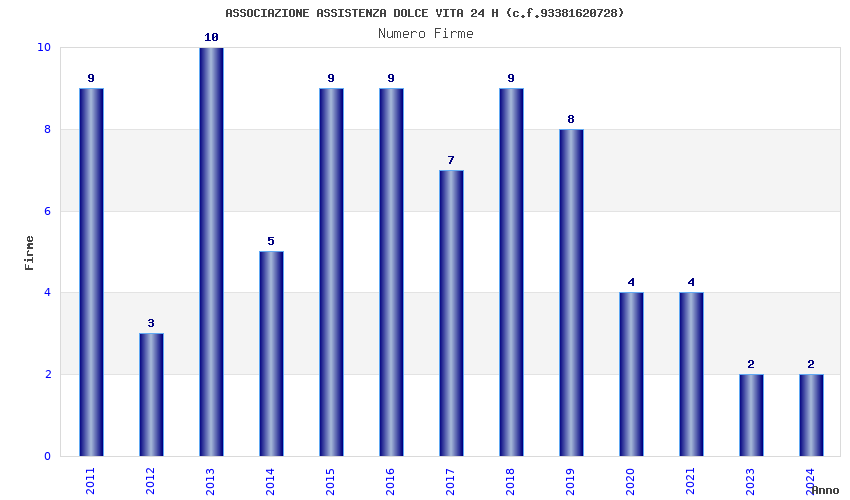 | Anno | Firme | Importi | Media | Naz. | Reg. | Prov. | Comu. |