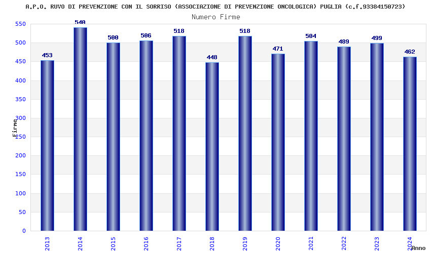 | Anno | Firme | Importi | Media | Naz. | Reg. | Prov. | Comu. |