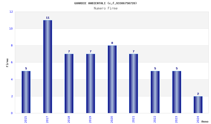 | Anno | Firme | Importi | Media | Naz. | Reg. | Prov. | Comu. |