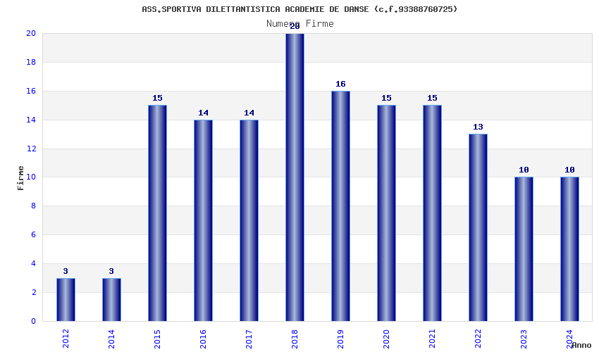 | Anno | Firme | Importi | Media | Naz. | Reg. | Prov. | Comu. |