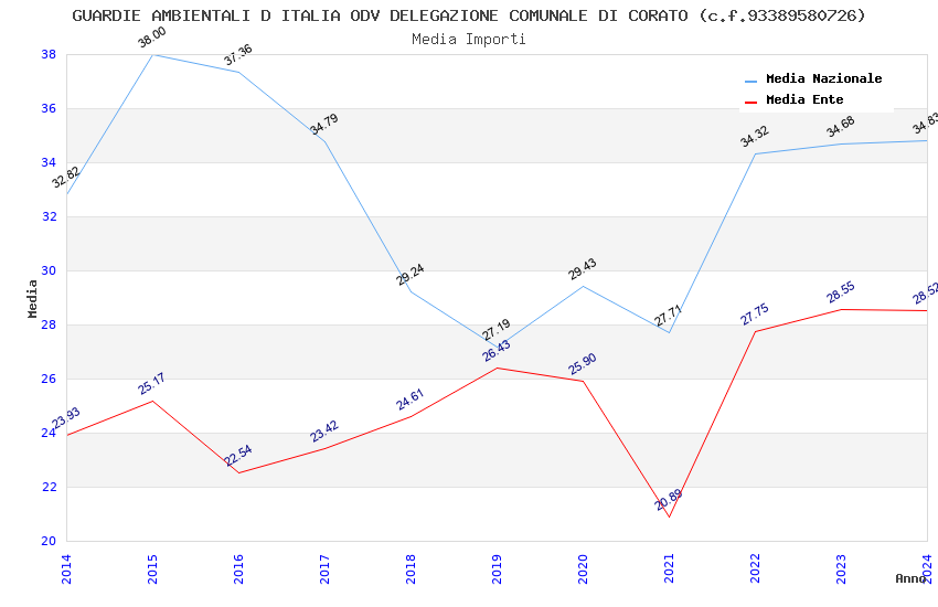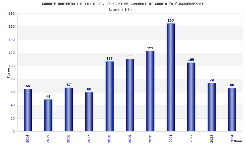 | Anno | Firme | Importi | Media | Naz. | Reg. | Prov. | Comu. |