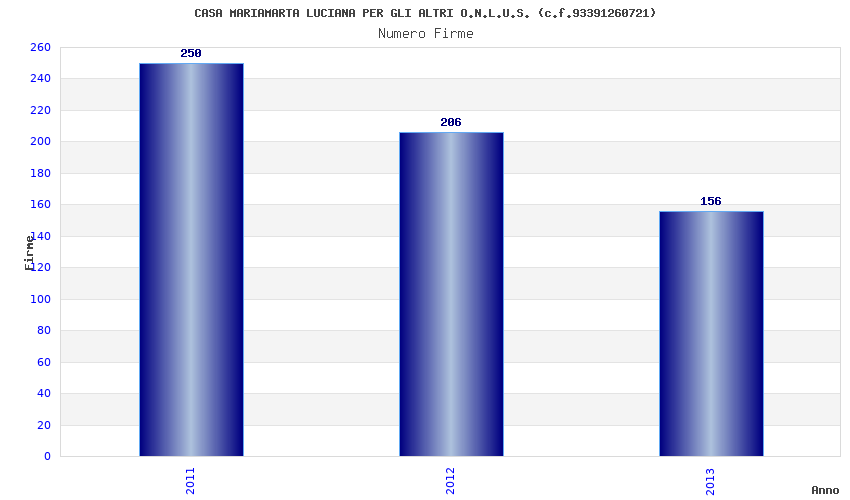 | Anno | Firme | Importi | Media | Naz. | Reg. | Prov. | Comu. |