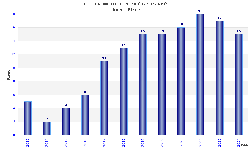| Anno | Firme | Importi | Media | Naz. | Reg. | Prov. | Comu. |