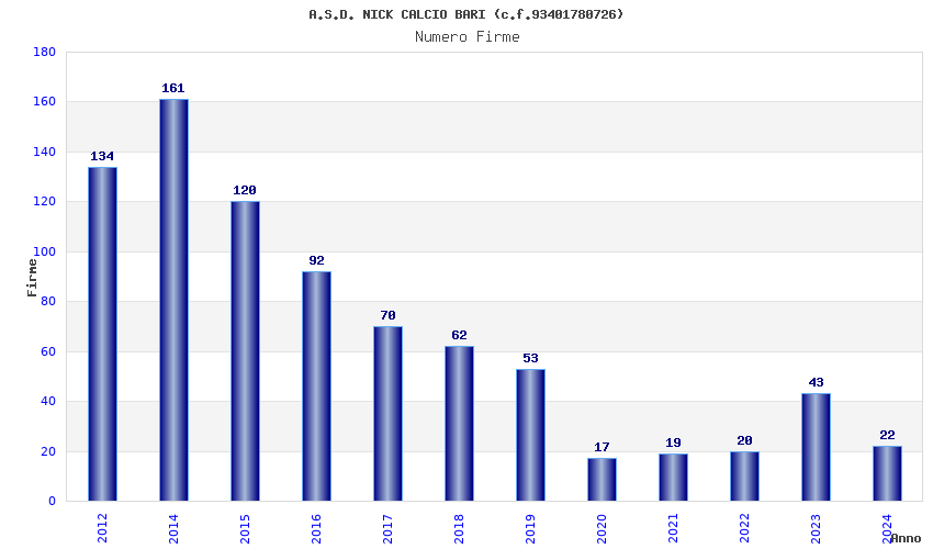 | Anno | Firme | Importi | Media | Naz. | Reg. | Prov. | Comu. |