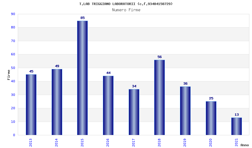 | Anno | Firme | Importi | Media | Naz. | Reg. | Prov. | Comu. |