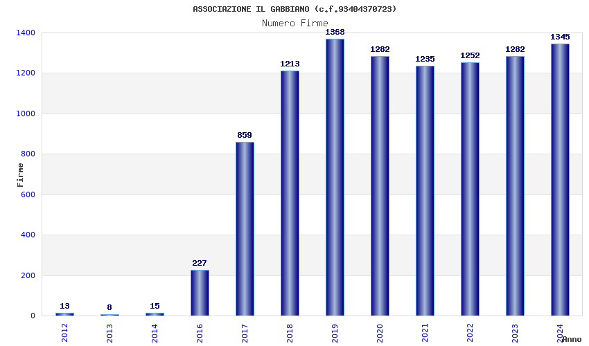 | 2019 | 1.368 | 23.752,56 | 17,36 | 1.724 | 61 | 27 | 14 |