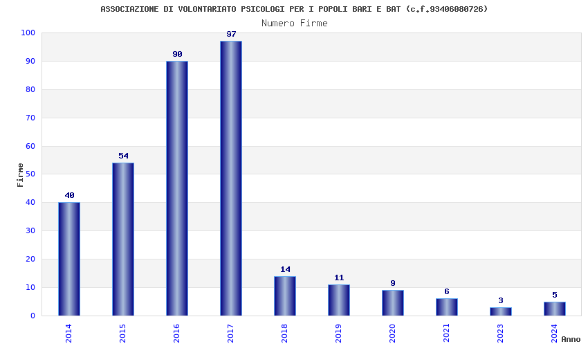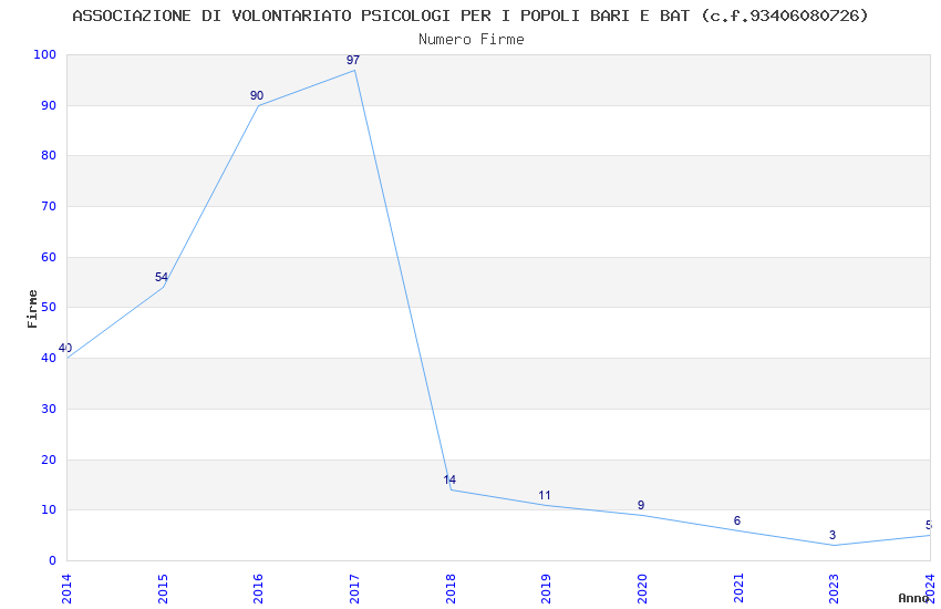| 2017 | 97 | 1.867,00 | 19,25 | 24.557 | 1.177 | 397 | 5 |