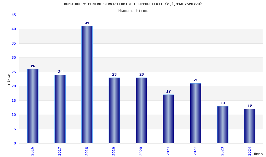 | Anno | Firme | Importi | Media | Naz. | Reg. | Prov. | Comu. |