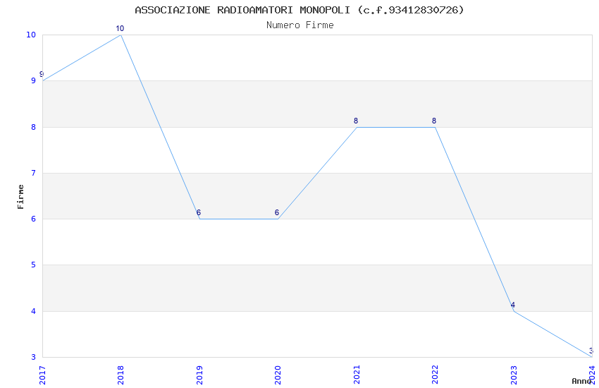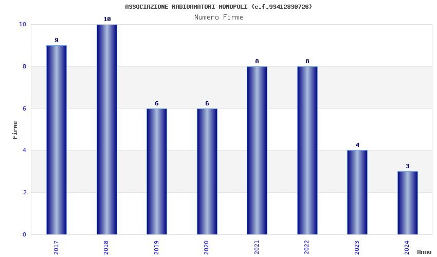 | Anno | Firme | Importi | Media | Naz. | Reg. | Prov. | Comu. |