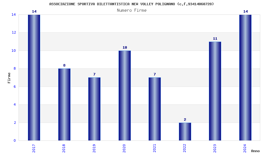 | 2017 | 14 | 393,66 | 28,12 | 46.685 | 2.195 | 704 | 7 |