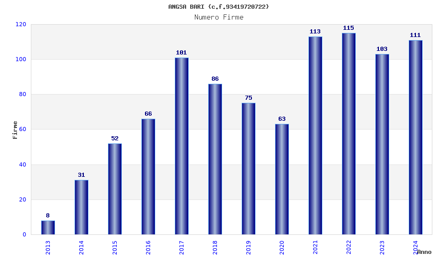 Anno Firme Importi Media Naz. Reg. Prov. Comu.