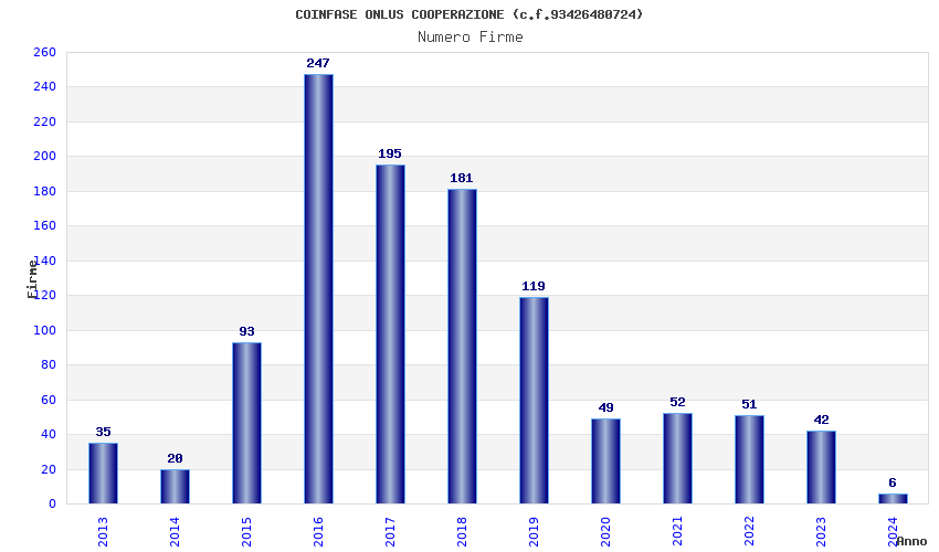 Anno Firme Importi Media Naz. Reg. Prov. Comu.