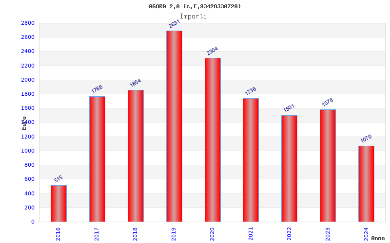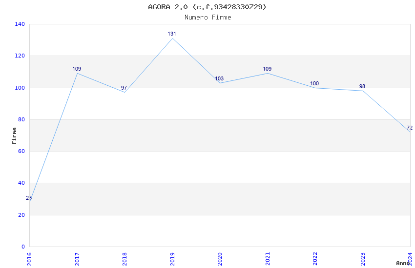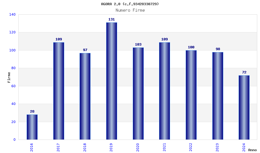 | Anno | Firme | Importi | Media | Naz. | Reg. | Prov. | Comu. |