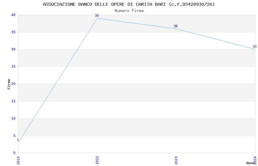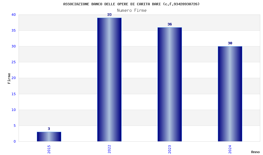 | Anno | Firme | Importi | Media | Naz. | Reg. | Prov. | Comu. |