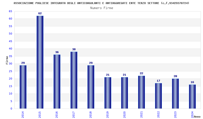 | Anno | Firme | Importi | Media | Naz. | Reg. | Prov. | Comu. |