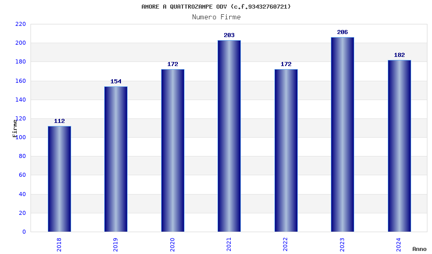 | Anno | Firme | Importi | Media | Naz. | Reg. | Prov. | Comu. |