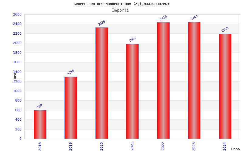| Anno | Firme | Importi | Media | Naz. | Reg. | Prov. | Comu. |