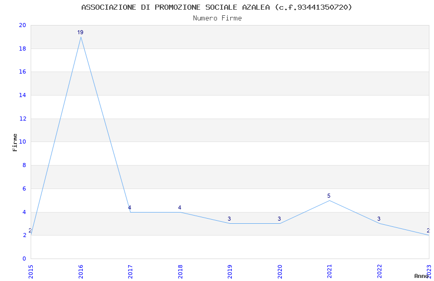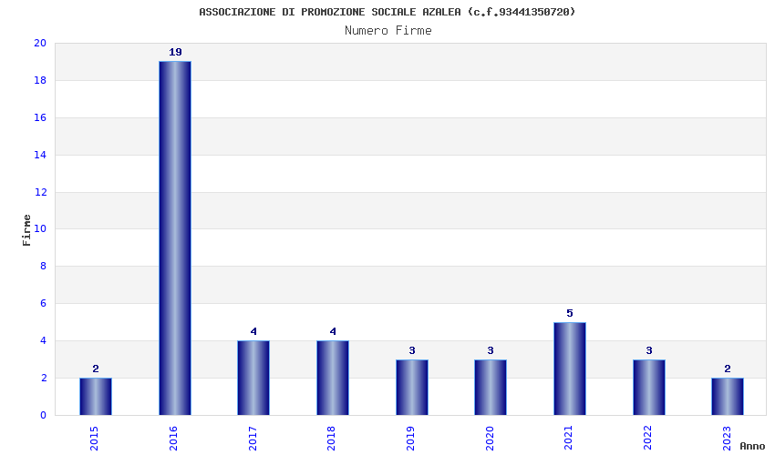 | Anno | Firme | Importi | Media | Naz. | Reg. | Prov. | Comu. |