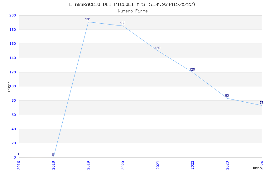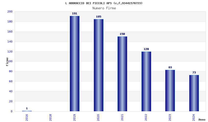 | Anno | Firme | Importi | Media | Naz. | Reg. | Prov. | Comu. |