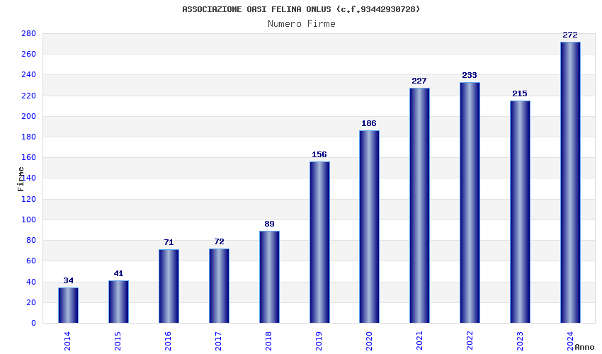 | Anno | Firme | Importi | Media | Naz. | Reg. | Prov. | Comu. |