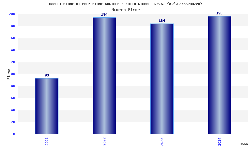 | Anno | Firme | Importi | Media | Naz. | Reg. | Prov. | Comu. |