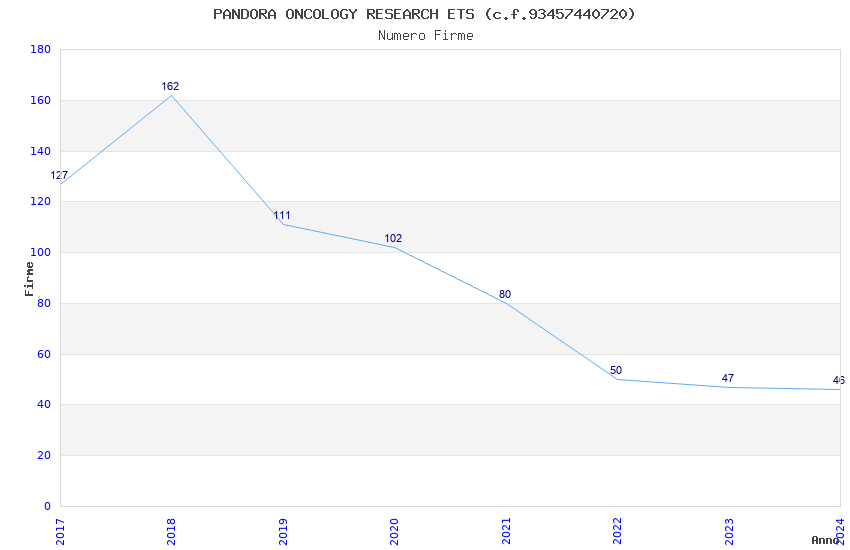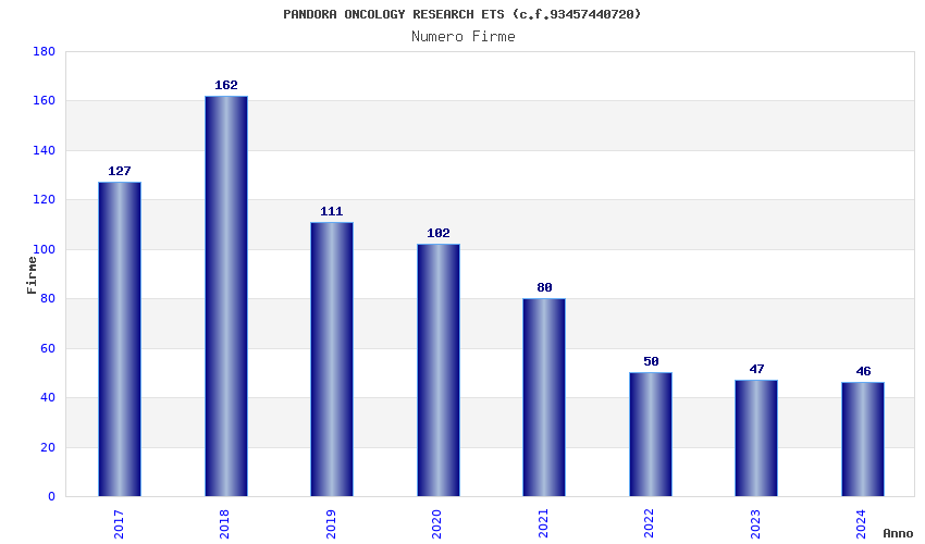 | Anno | Firme | Importi | Media | Naz. | Reg. | Prov. | Comu. |