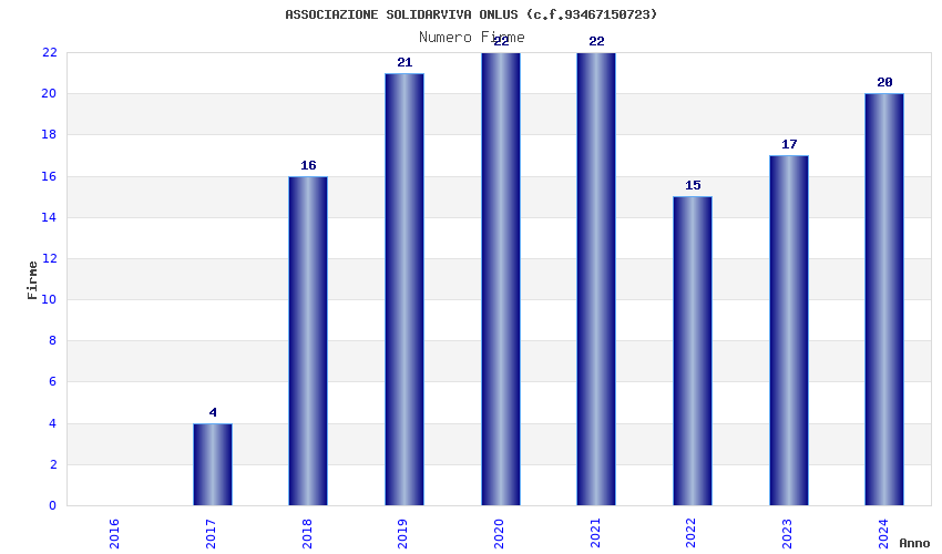| Anno | Firme | Importi | Media | Naz. | Reg. | Prov. | Comu. |