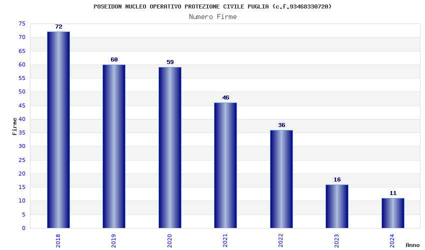 | 2018 | 72 | 1.674,50 | 23,26 | 26.495 | 1.284 | 447 | 4 |