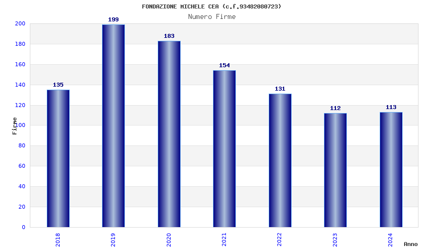 | Anno | Firme | Importi | Media | Naz. | Reg. | Prov. | Comu. |