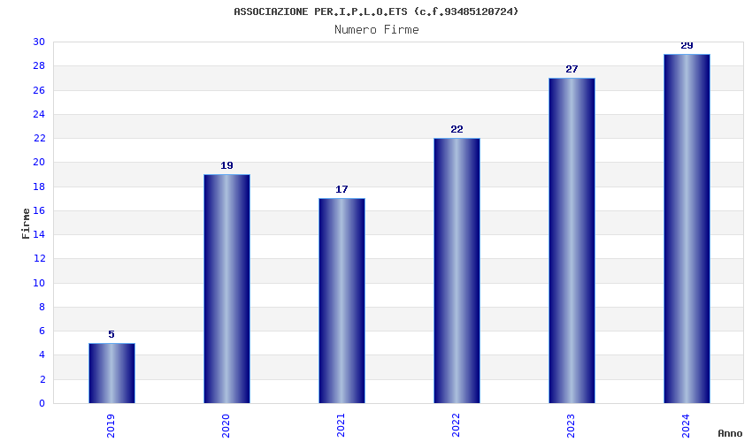 | Anno | Firme | Importi | Media | Naz. | Reg. | Prov. | Comu. |