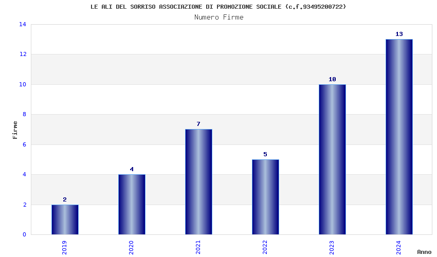 | Anno | Firme | Importi | Media | Naz. | Reg. | Prov. | Comu. |