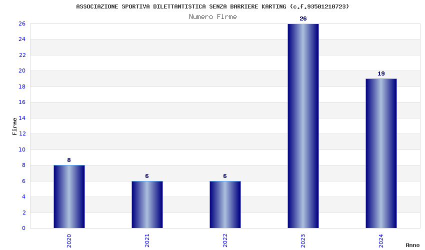 | Anno | Firme | Importi | Media | Naz. | Reg. | Prov. | Comu. |