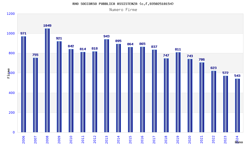 | Anno | Firme | Importi | Media | Naz. | Reg. | Prov. | Comu. |
