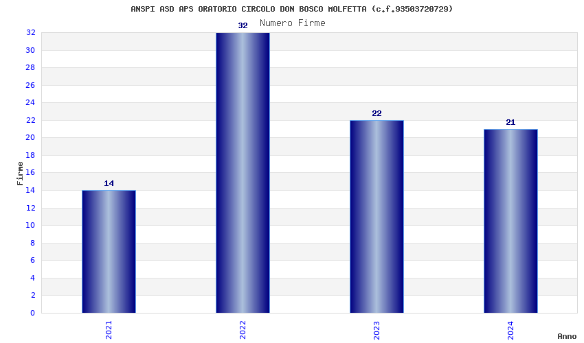| Anno | Firme | Importi | Media | Naz. | Reg. | Prov. | Comu. |