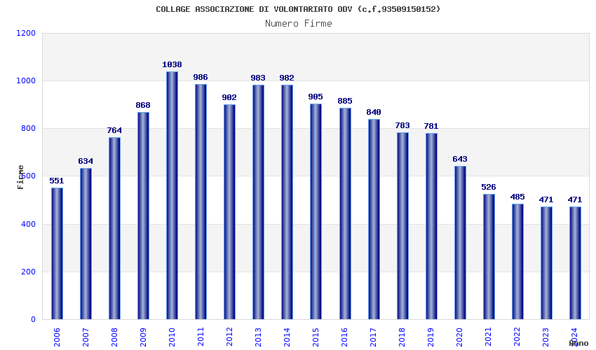| Anno | Firme | Importi | Media | Naz. | Reg. | Prov. | Comu. |