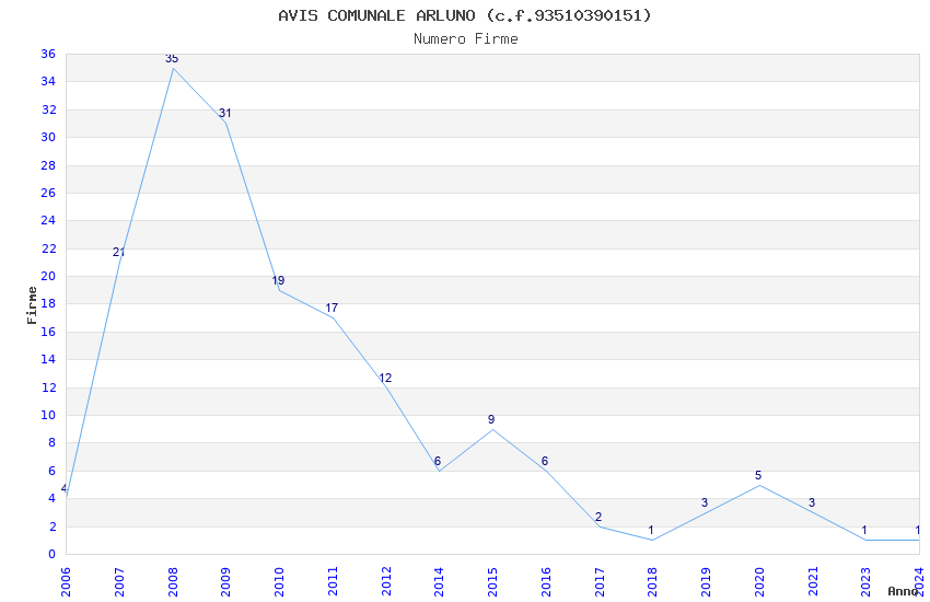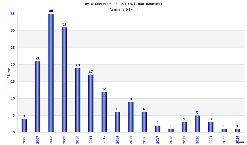 | Anno | Firme | Importi | Media | Naz. | Reg. | Prov. | Comu. |