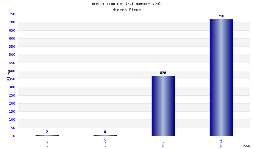 | Anno | Firme | Importi | Media | Naz. | Reg. | Prov. | Comu. |
