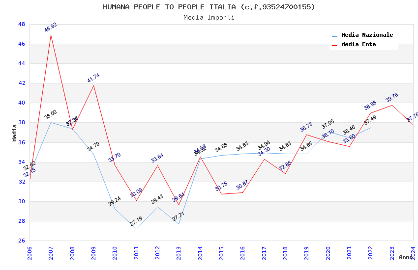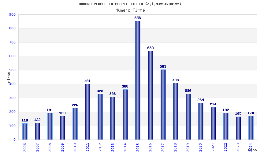 | Anno | Firme | Importi | Media | Naz. | Reg. | Prov. | Comu. |