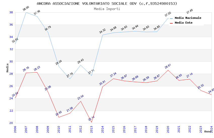 | Anno | Firme | Importi | Media | Naz. | Reg. | Prov. | Comu. |