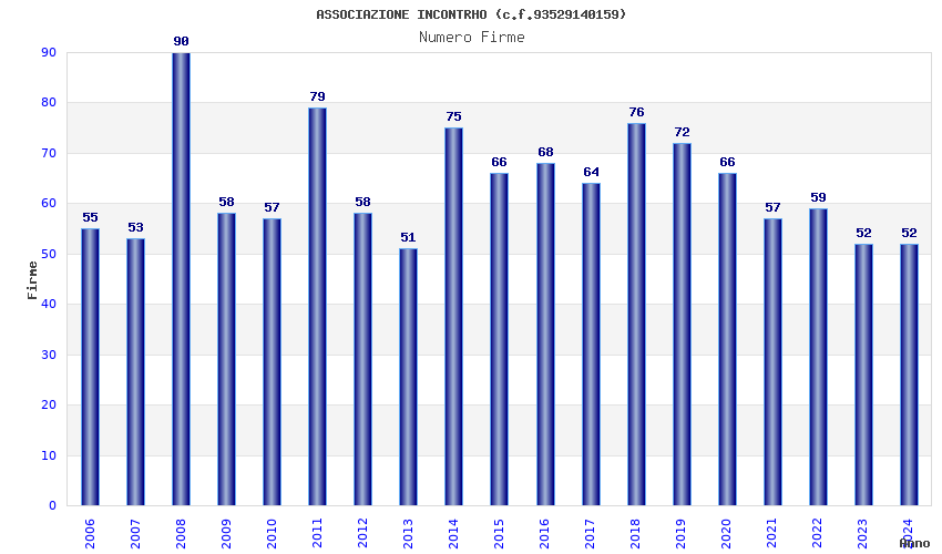 | Anno | Firme | Importi | Media | Naz. | Reg. | Prov. | Comu. |