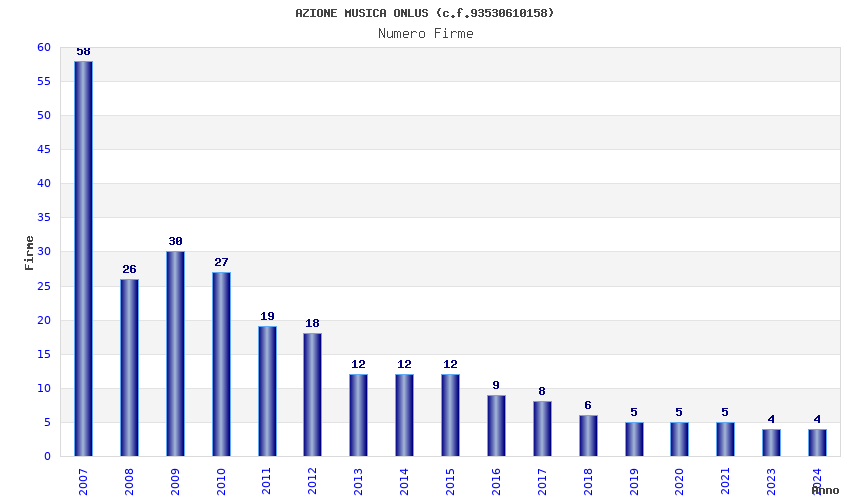 | Anno | Firme | Importi | Media | Naz. | Reg. | Prov. | Comu. |