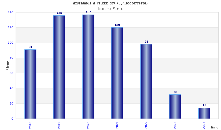 | Anno | Firme | Importi | Media | Naz. | Reg. | Prov. | Comu. |
