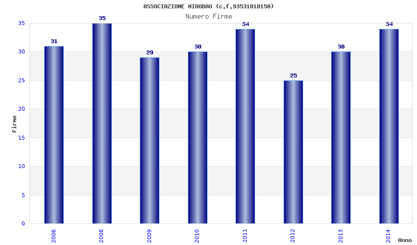| Anno | Firme | Importi | Media | Naz. | Reg. | Prov. | Comu. |