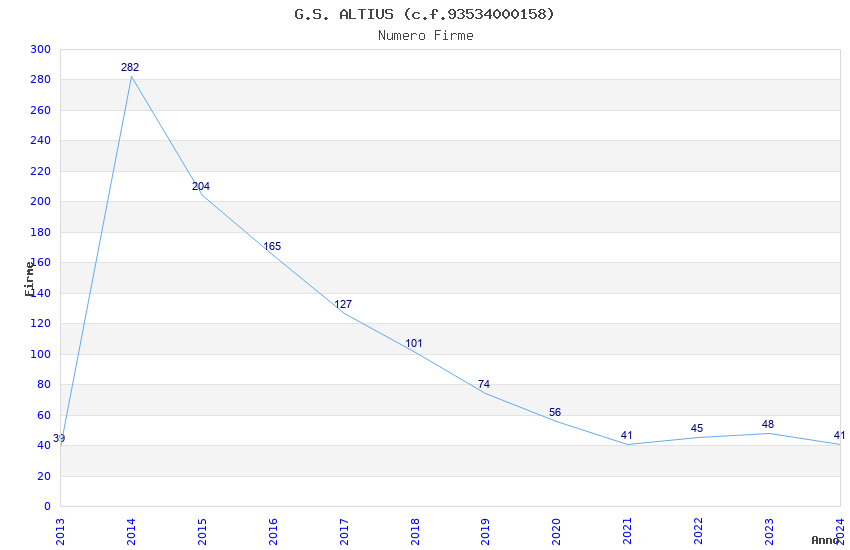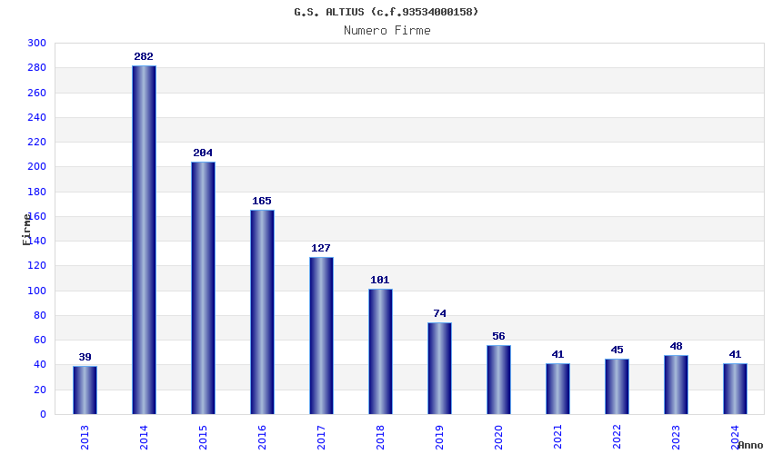 | Anno | Firme | Importi | Media | Naz. | Reg. | Prov. | Comu. |