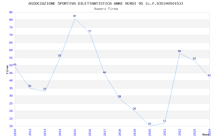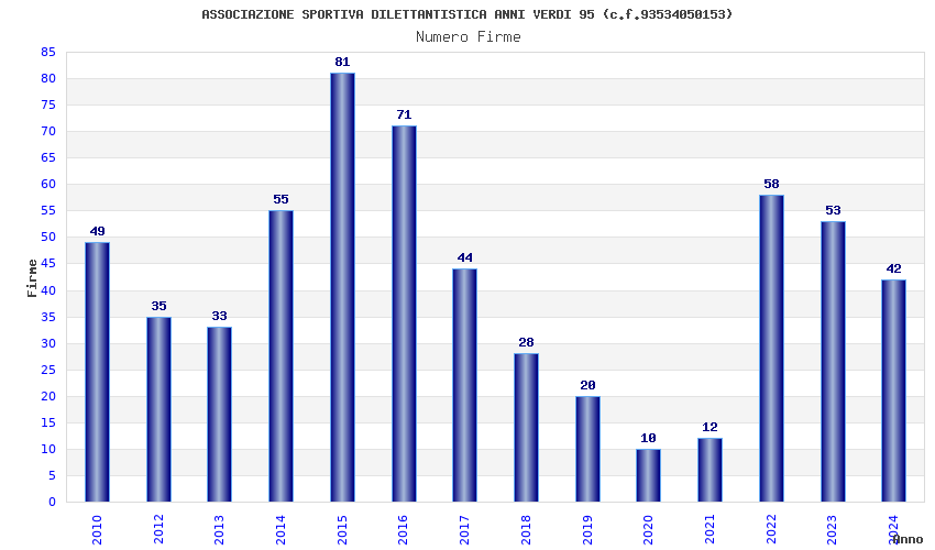 | Anno | Firme | Importi | Media | Naz. | Reg. | Prov. | Comu. |