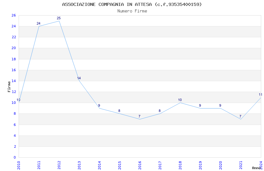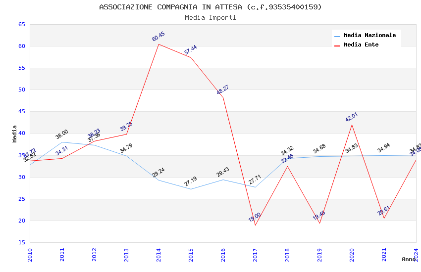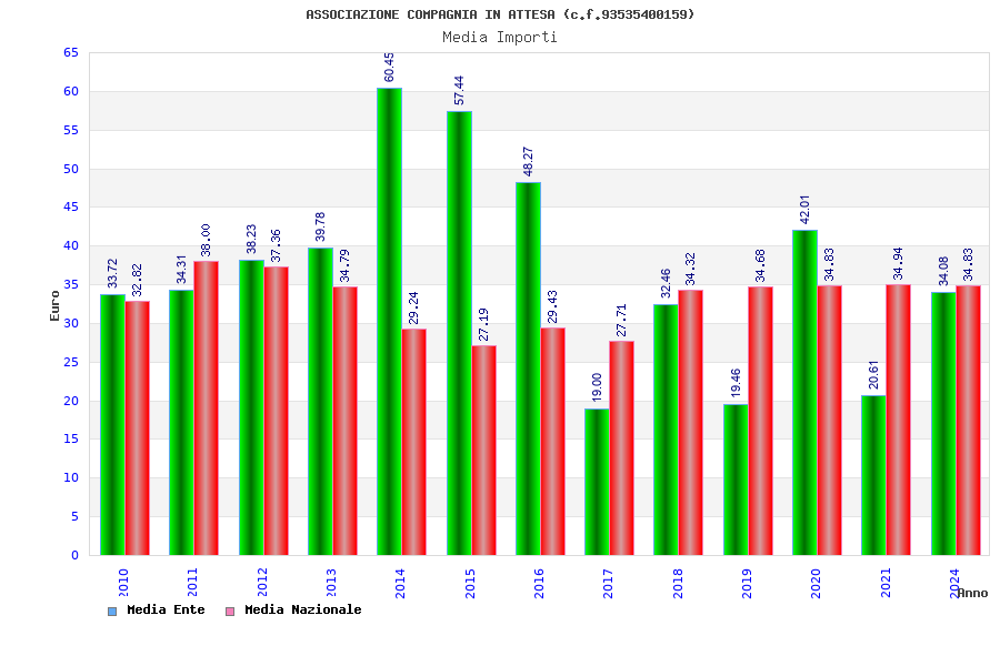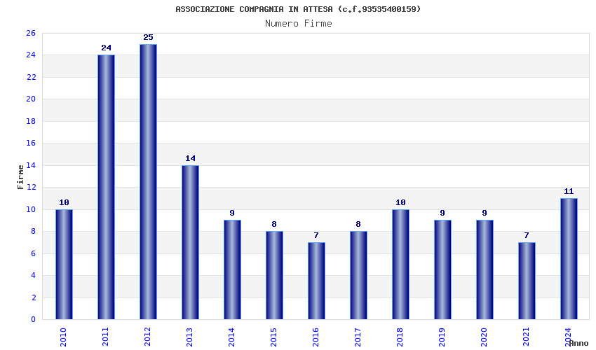 | Anno | Firme | Importi | Media | Naz. | Reg. | Prov. | Comu. |